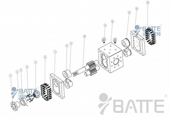 熔體泵結(jié)構(gòu)主要由泵體、主動齒輪和從動齒輪、滑動軸承、前后端板、填料密封等部件組成,被廣泛應用于塑料、樹脂、橡膠、化纖制品的擠出成型。